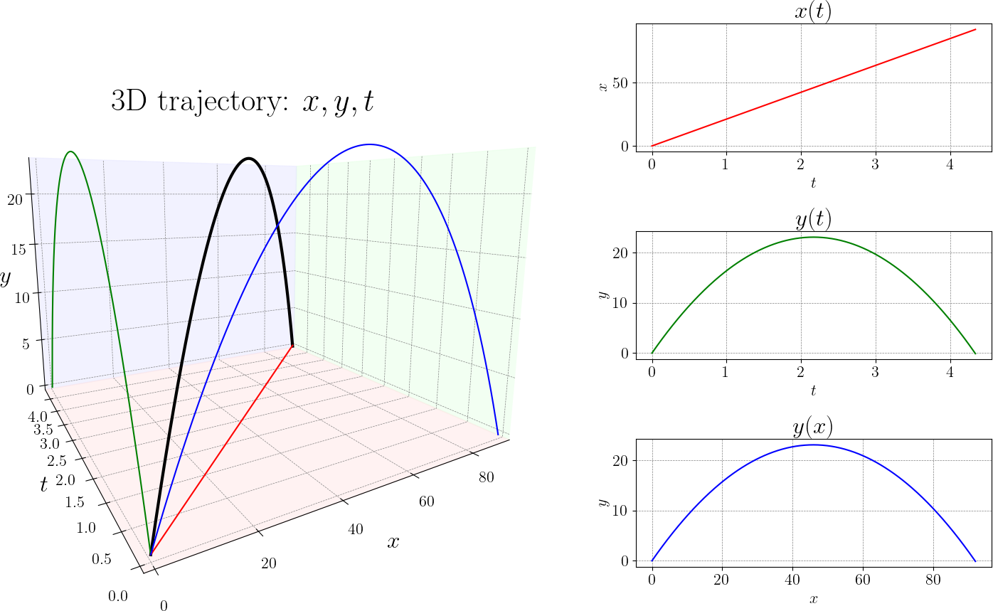 Let us apply the reasoning to our gorillas. Place the gorilla at the origin \((0,0)\), and imagine that it tosses a banana with some known initial speed and direction. In two dimensions, this motion naturally splits into two independent directions. The horizontal motion only depends on the horizontal component of the velocity, while the vertical motion depends on the vertical component. This separation is important: gravity affects only the vertical direction, leaving the horizontal motion unchanged.
