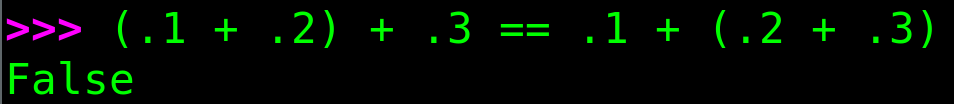 Do not rely on algebraic laws (associativity, distributivity) to hold exactly. As a consequence, avoid using == for floating-point numbers when the results are obtained from non-trivial computations.