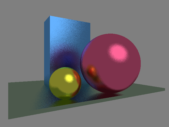 Since my language is extremely primitive, I need simple examples, but ones that are as more "wow" as possible. Ray tracing and demoscene are perfect for this. Here is the result of one of the examples written in my language:
